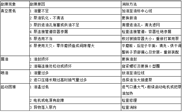 5 若抽除的氣體含有大量水蒸氣、溫度過(guò)高及含有塵埃等,應(yīng)在進(jìn)氣口管道上加冷卻器、過(guò)濾器等相應(yīng)的裝置,以免影響泵的正常使用 六、故障排除